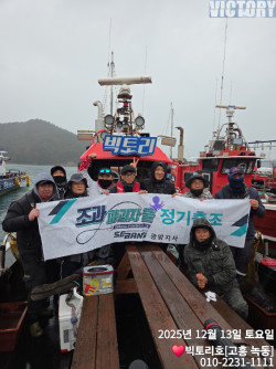 #조황 #쭈꾸미 녹동[빅토리호]12/13 쭈꾸미 조황 소식 입니다.오늘은 세방피싱 단체분들을 독배로 모셔봤습니다.바람은 좀 있었지만 물때가 좋다보니 쭈꾸미는 잘 나와주는 하루였어요.소수 개인 편차는 있었지만 끝까지 열심히 해주신 분들은 넉넉한 마릿수로 챙겨 가셨습니다.내일 일요일도 물때는 좋은데 아쉽게도 비.바람 소식이 있어요~그러나 조금은 호전이 되었으니 그래도 감수하고 오실분들은 예약 바랍니다.월,화,수,목 4일간 날씨 쵝오예요~쭈꾸미 놀러들 오셔요.출조예약문의 010-2231-1111주소 : 전남 고흥군 도양읍 목넘가는길51-5(넓은 공터 중간 컨테이너 박스 바로 앞에 주차하시면 배와 가까워 승.하선 시 편리 합니다) === 녹동 빅토리호 예약안내 ===예약문의 : 010-2231-1111오시는기 : 전남 고흥군 도양읍 목넘가는길51-5홈페이지 : http://victoryfishing.sunsang24.com/